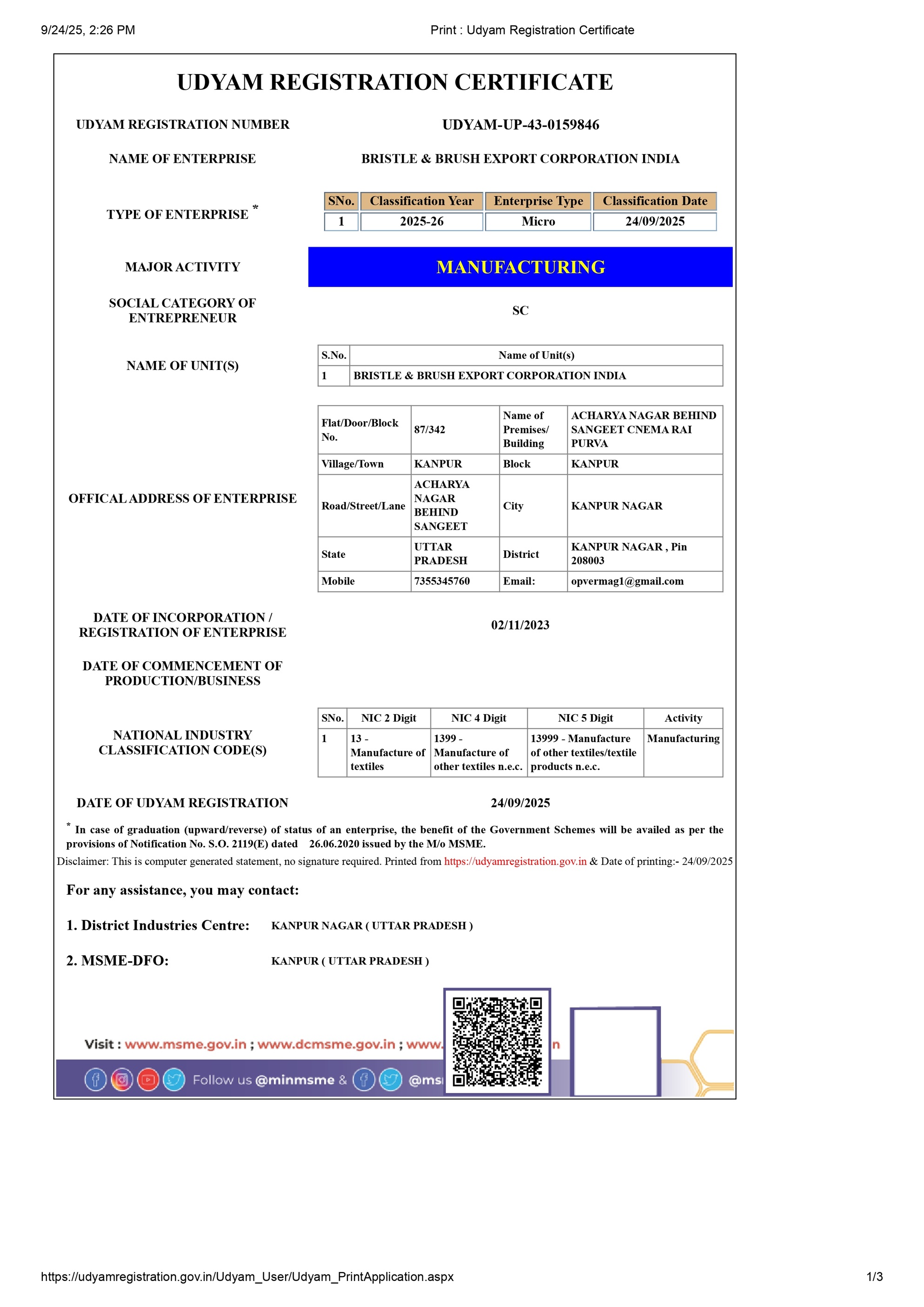 Additionally, every export consignment is accompanied by a Certificate of Origin (Preferential or Non-Preferential, as applicable), confirming compliance with international trade protocols and supporting faster clearance at destination ports. With these certifications, Bristle Brush, led by Rajdeepsinh Jadeja, ensures reliability, trust, and seamless delivery to our global partners.